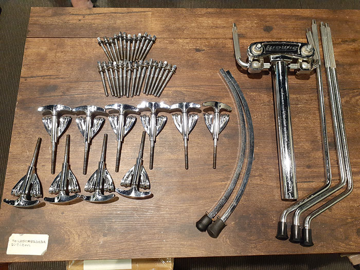パーツ/BDウッドフープ(インレイもオリジナルカバリング)、BDフック、T字型ボルト、TOM類フープ、ブラケット、BDレッグ、全てがオリジナルパーツのまま残っています。)
