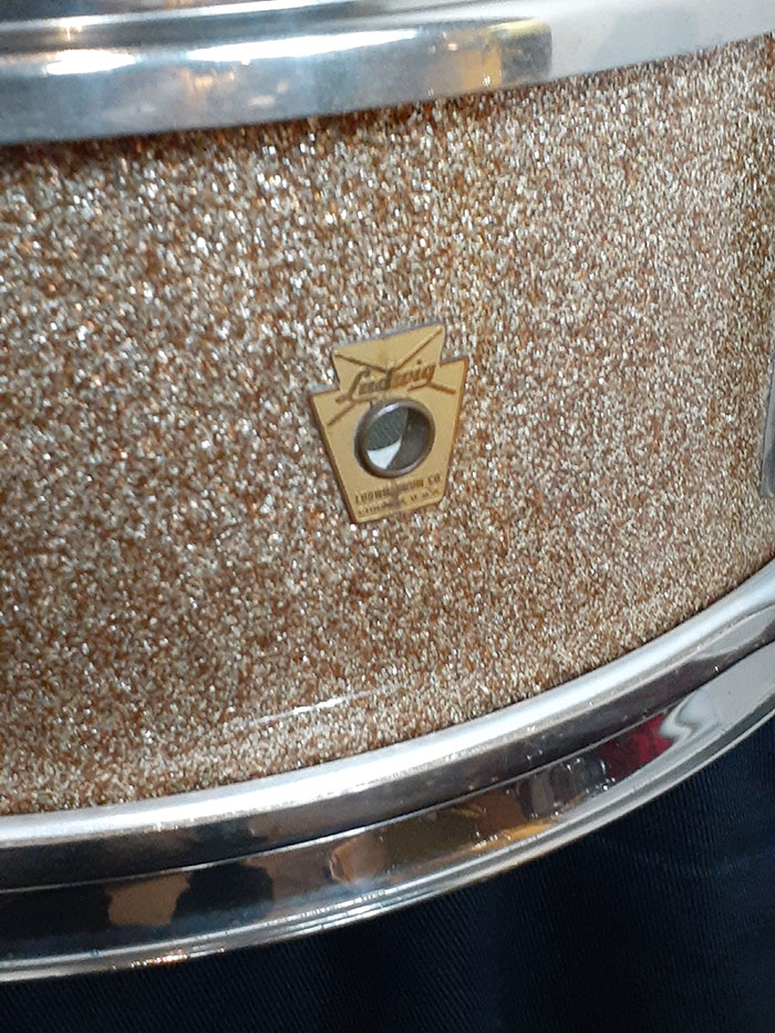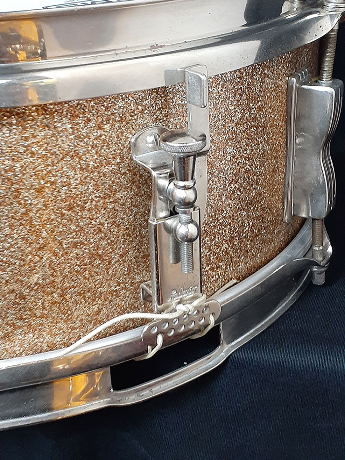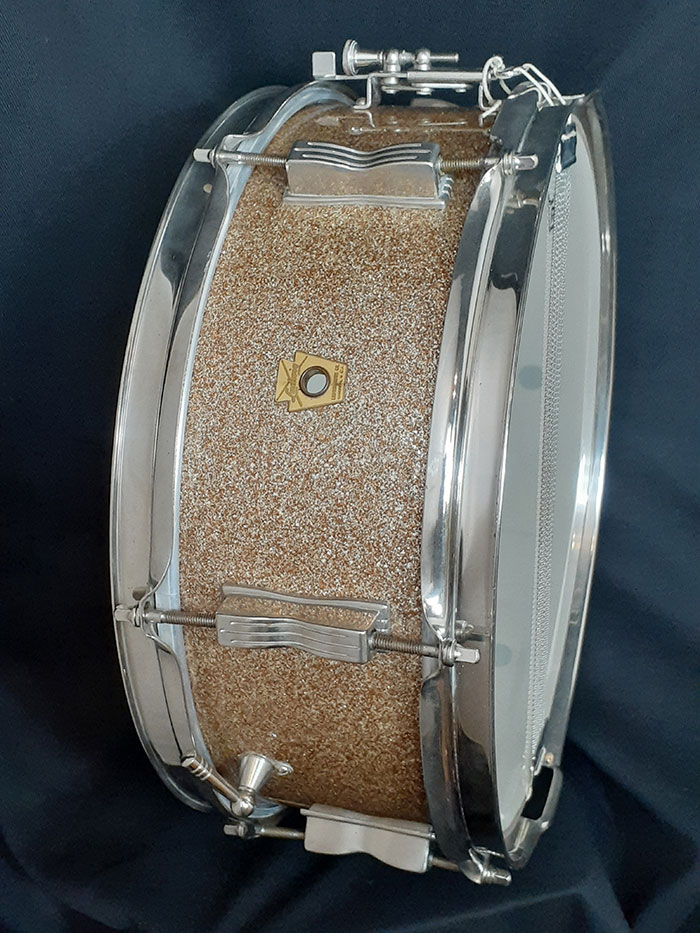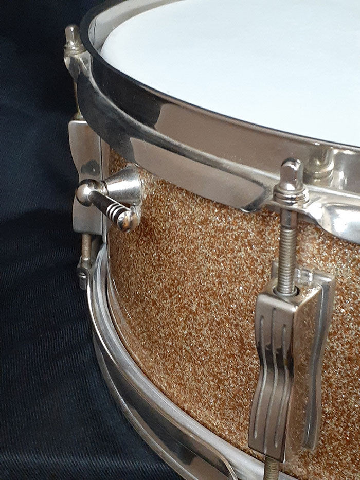 フープは上下ともビンテージラディックブラスフープを装着しています。ヘッドは現行レモヘッドへ交換されています。