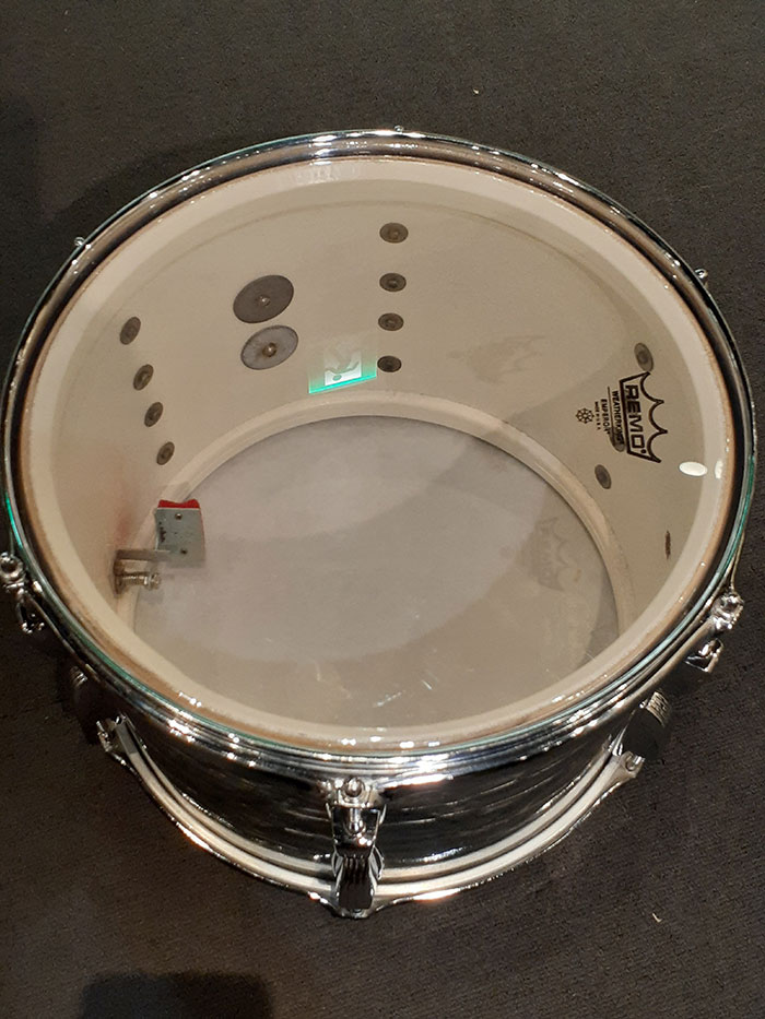 13"TOMはインナーマフラーがレッドマフラー、フープは上下ともブラスフープが装着されていることから1964年製造のものに間違いないです。