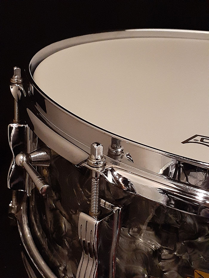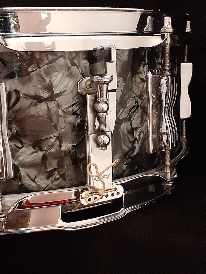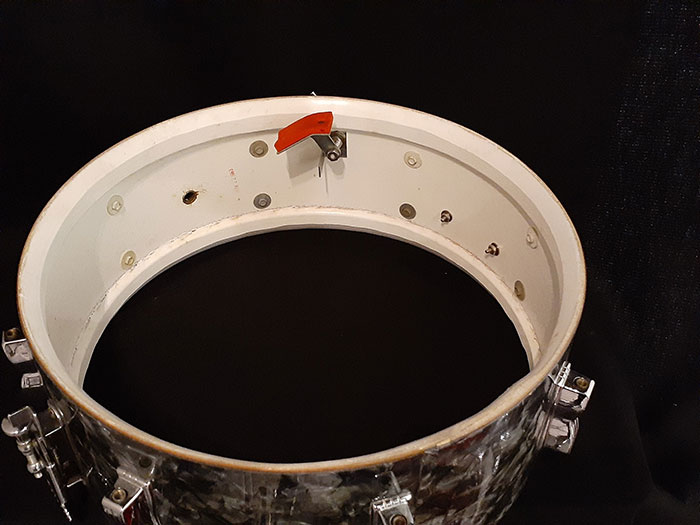 上下フープはオリジナルCOBフープ搭載、内蔵マフラーはベースボールバットで赤フェルト、ラグ、ボルト共にオリジナルでございます。P-83のストレイナースイッチ、バッド側はP-32、スナッピーはオリジナル3つ穴18本ワイヤーが装着しており良好です。 ヘッド以外は全て当時のボルトやブラスワッシャーまでオリジナルの逸品となっております。 (仕様) サイズ:14"×5,5" シェル:ポプラ、マホガニー3プライ メイプルレインフォースメント フープ:オリジナルクロムオーバーブラスフープ カラー:オリジナルブラックダイヤモンドパール ストレイナー:P-83 バッド部:P-32 スナッピー:オリジナル3つ穴18本ワイヤー ヘッド:REMOコーテッドアンバサダー ボトムヘッド:REMOスネアサイドアンバサダー