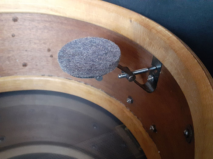 テンションボルトもオリジナルで全てブラスワッシャーが付属。スナッピーワイヤーは60年代のLUDWIGプラスティックレンド20本ワイヤーが装着しているのも嬉しいです。