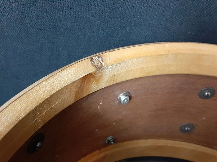 シェルはマホガニー、ポプラ、マホガニー3プライ&メイプル・レインフォースメント、インテリアコート無し、シェル表面も元からカバリングなどなくマホガニー剥き出しの仕様です。6テンションという仕様と相まってカバリングなし、インテリアなしの方がシェル自体が非常に胴鳴りがしてオープンなサウンドが得られると好評です。
