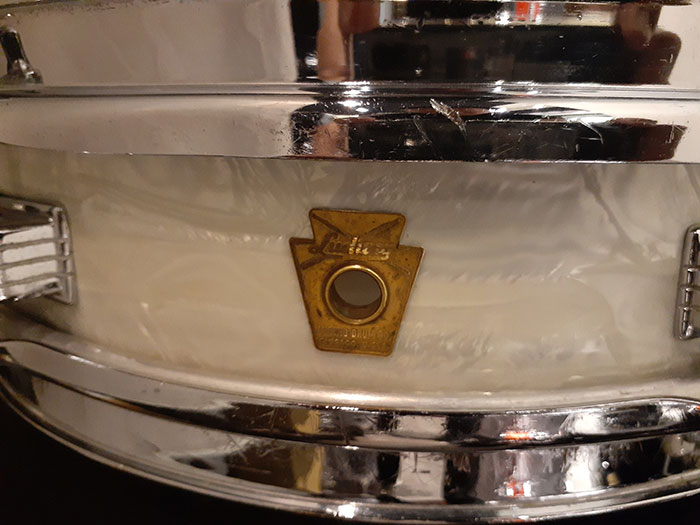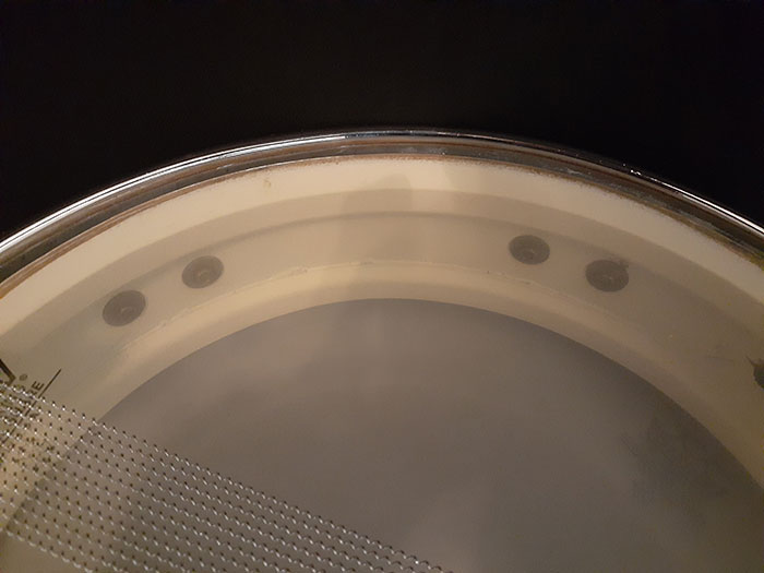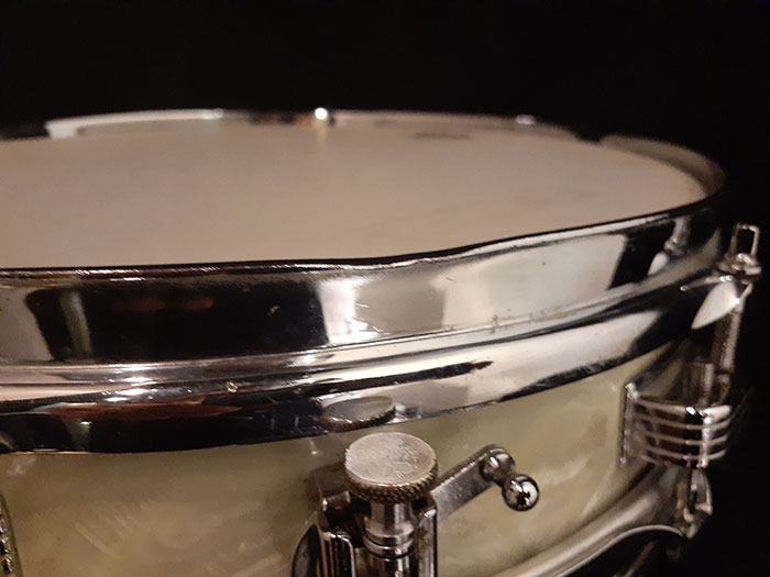 打面フープ側面に前のオーナーでしょうか『CHS・MUSIC』とうっすらフープに彫られています。アメリカあるあるです。