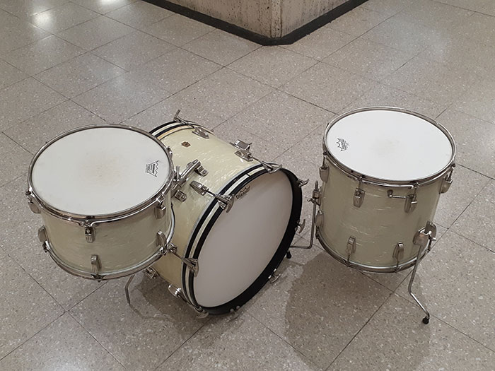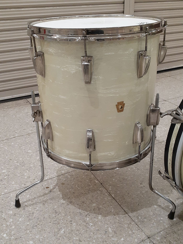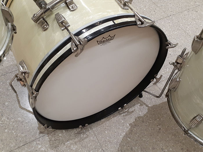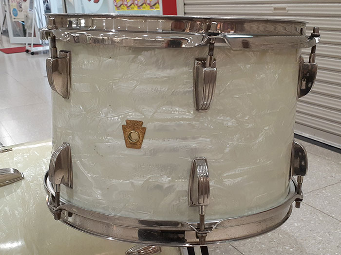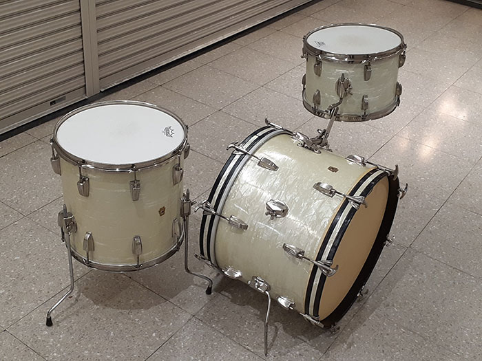 60年代初期のブラスフープ装着のヴィンテージラディックDOWNBEATセットです。(フロアタムボトム側のみスティールフープ装着)