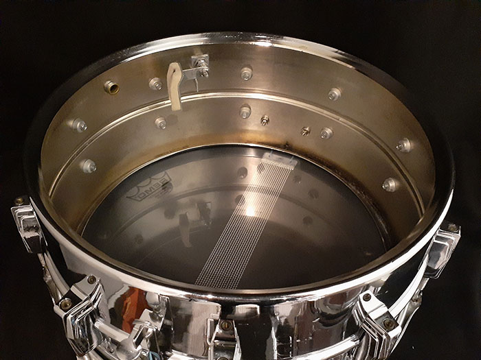 スナッピーもオリジナルの通称3つ穴18本スナッピーが装着。ヘッドのみ新しいものに交換されています。