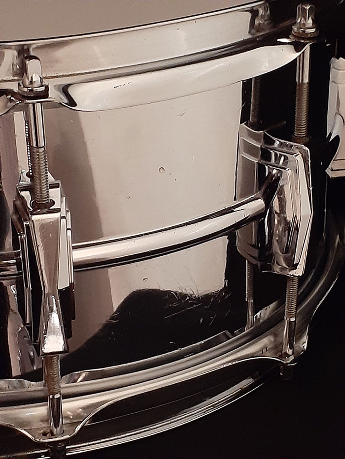 こちらのスネアドラム使用感やシェル表面に細かいキズはございますが、シェル、エッジやフープ自体は良好でサウンド良好な個体です。<