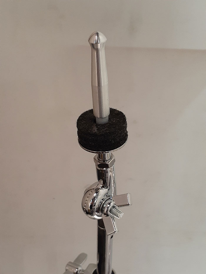 またシンバルスタンドの先に簡単に装着することができ、これで従来の蝶ネジなどシンバルスタンドの先端が飛んでいく心配も解消されます。