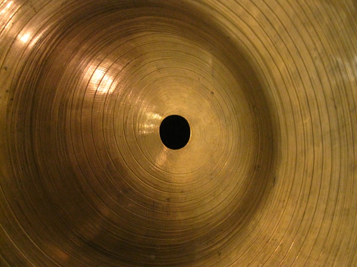 ややセンターホールが広がっています。シンバルのくすみはあるものの割れ欠け等サウンドに影響するようなキズはございません。