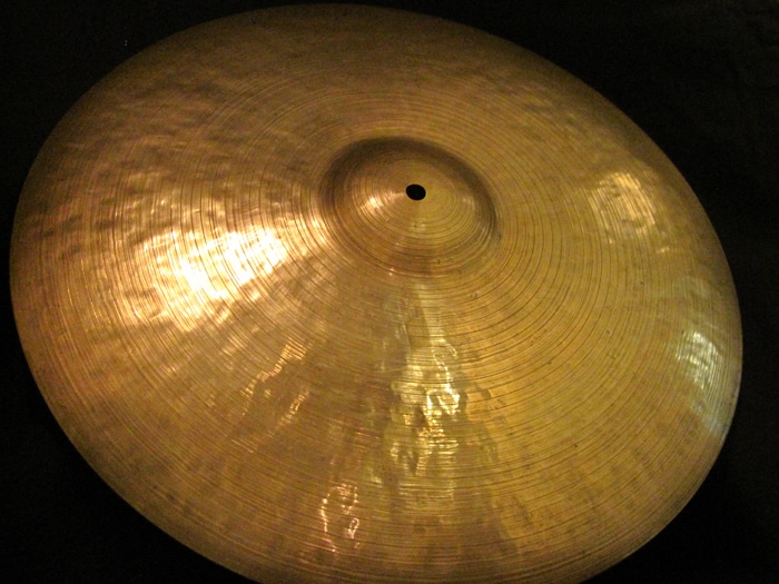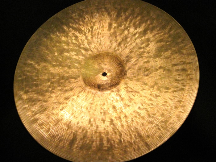 刻印がNew Stampであることから1967年以降の製造品と思われます。ウェイトは3,071gとミディアムヘヴィウエイト、スティック材質でサウンドの変化が楽しるブルーノートサウンド表現します。全体的なキャラクターは非常に深みがありクセは少なく扱いやすいオールドKでございます。22インチで3000gを越えると懸念しがちですが、さすがistanbul Kです。確かにピングは強く奏でますが、まとまりや感上品さは逸品でございます。ガッド的スタジオセッションサウンドが得られます。
