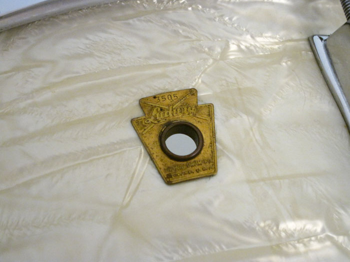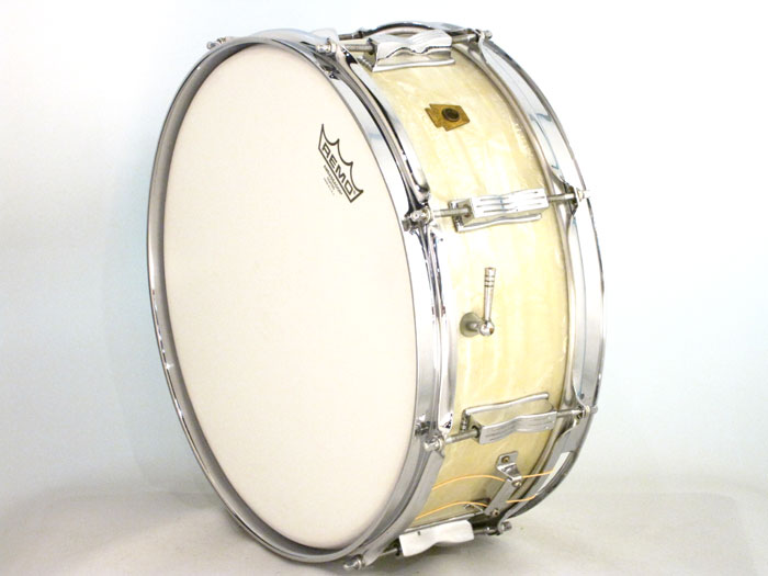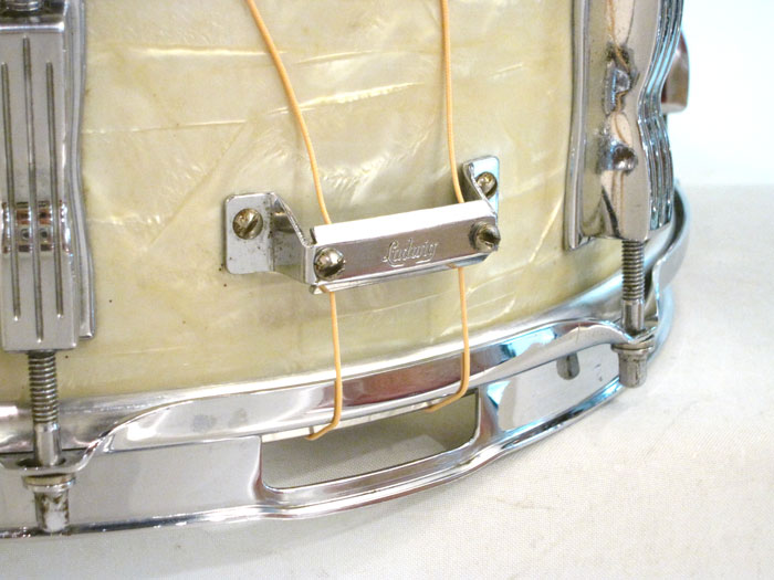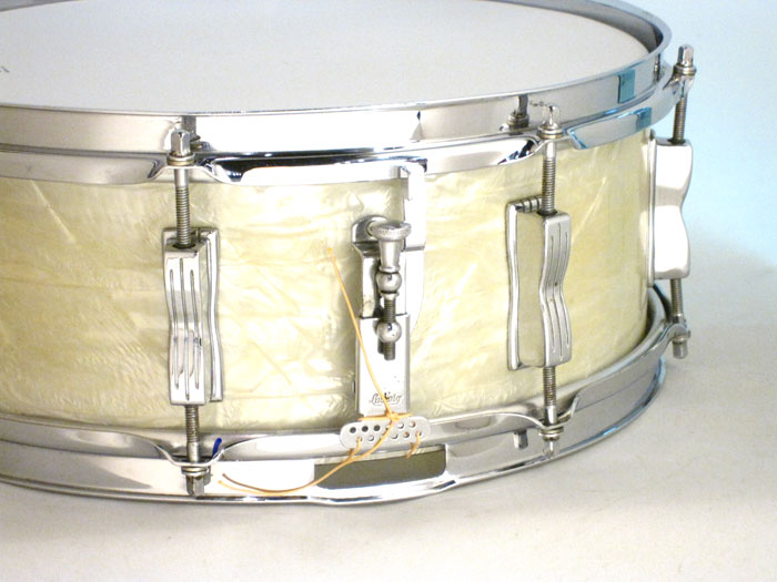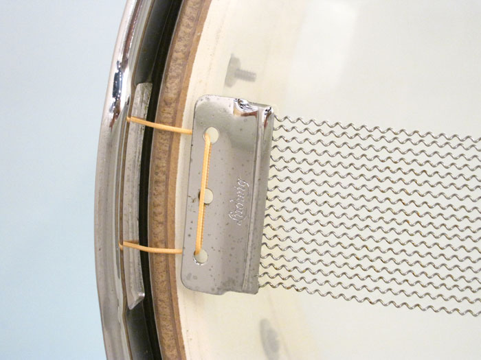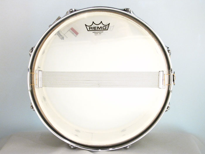 上下フープはオリジナルCOBフープ搭載、内蔵マフラーはベースボールバットで赤フェルト、ラグ、ボルト共にオリジナルでございます。P-83のストレイナースイッチ、バッド側はP-32、スナッピーは60's L-1930ワイヤー20本は若干よれていますがまだまだご使用出来ます。ヘッドはREMOコテッドアンバサダーに交換しております。