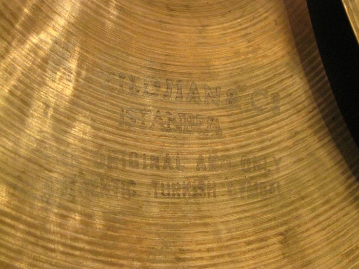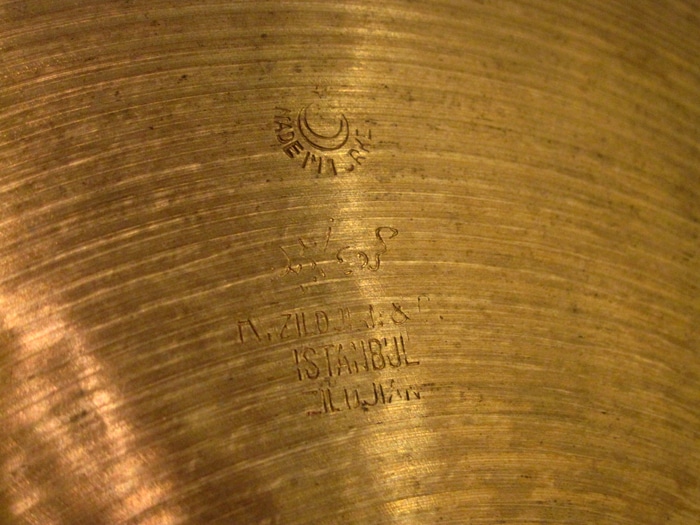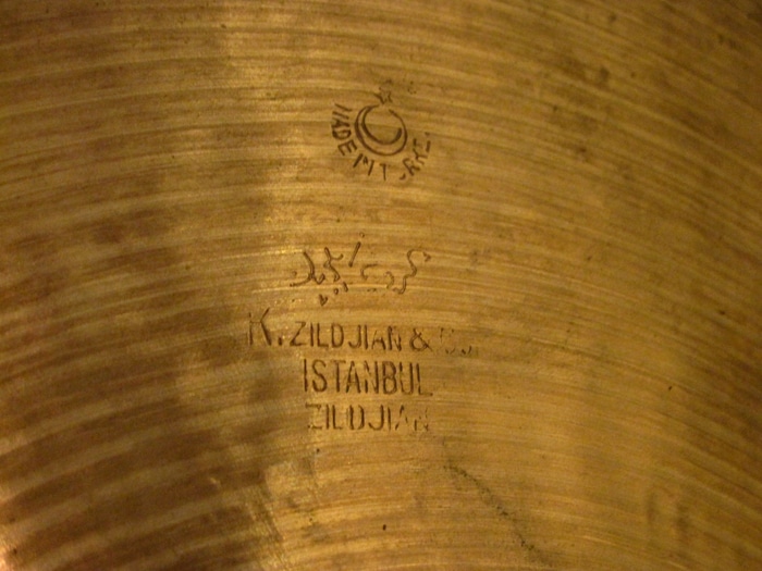 刻印より、トレードマークの星が小さく、かつ三日月に添って“Made in Turkey” と囲んでいており、アラビア文字が若干省略されたような刻印が1959年から66年に製造されたイスタンブールkジルジャンのシンバルです。