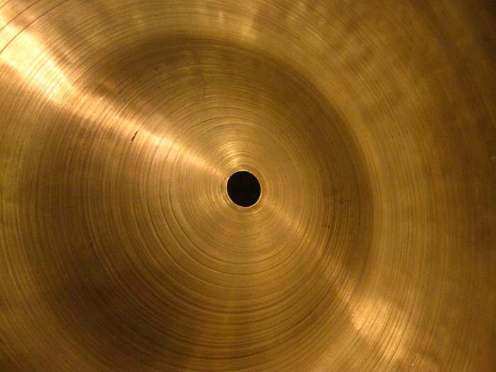 オールドシンバルのような経年変化を出すために、表面をくすませています。ドライでコツコツしたレガートサウンドが特徴でございます。