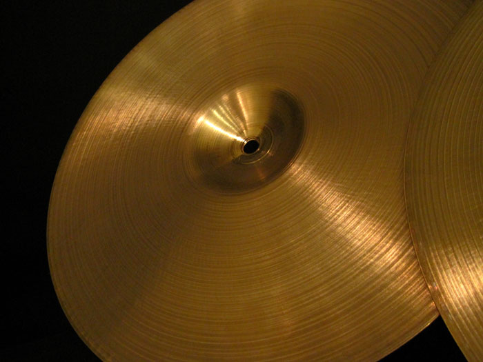 ニュービート・ハイハットの最大の特徴は、従来トップとボトムのウェイトが同じ~100gほどの差だったものを250g以上の差をつけ、ボトムを厚くしてある点です。これによりシャープで鋭いチック音を生み出し、70年代のロックシーンではほとんどのドラマーがこのニュービート・ハイハットを使用していました。現在は長い年月が経ち、経年変化からサウンドはくすみ、また70年代と違い少しシズリー感を兼備えておりロックだけでなくポップス、ファンクといった幅広いジャンルでご使用いただけます。
