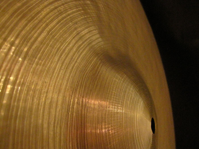 刻印がIntermediate Stampであることから1959~1966年の製造品と思われます。またレイジングが深く疎らな間隔で仕上げとなっています。ウェイトは 2,446gとミディアムヘヴィでIntermediate特有のドライさ、きめ細かいハンドハンマリングでistanbul kのダークさ、メローなツブ立ちでトラッシーなサウンドを表現します。