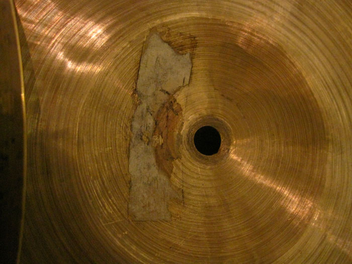 トップ、ボトム共にセンターホールが非常に小さくなっています。トップはYAMAHA製のLC810Aのハットクラッチは装着可能。ボトム側はカップチルターが削れたものやビンテージ品でチルターが8mm以下のものでしたら問題ございません。割れ欠けといったサウンドに影響するようなキズ、エッジ部の凹みキズも少なく優良品です。