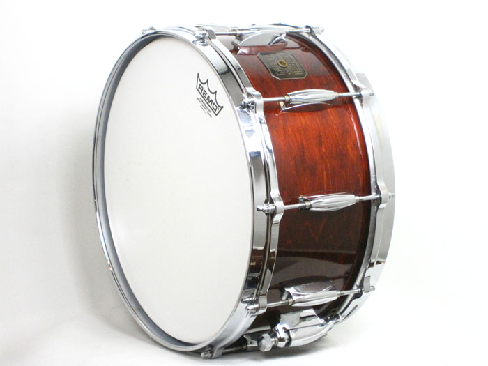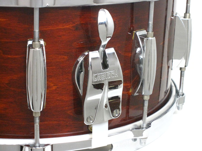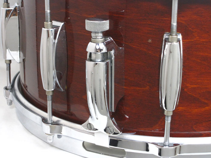 GRETSCH DRUMが大きく変わろうとする前期のモデルで隠れた名器揃い、役者揃いが80年代から90年代の特有であります。経年変化によりGRETSCH MAPLE(JASPER SHELL)はドライトーンながらサウンドの広がりがあり、現行品とは生産場所の違うUSA製造のオリジナルフープによって、リムショット時は明るさがなくピッチも低く奏でます。深胴モデルで所謂Floor Showでジャズドラマーに人気の機種でございます。