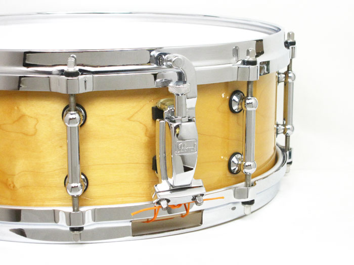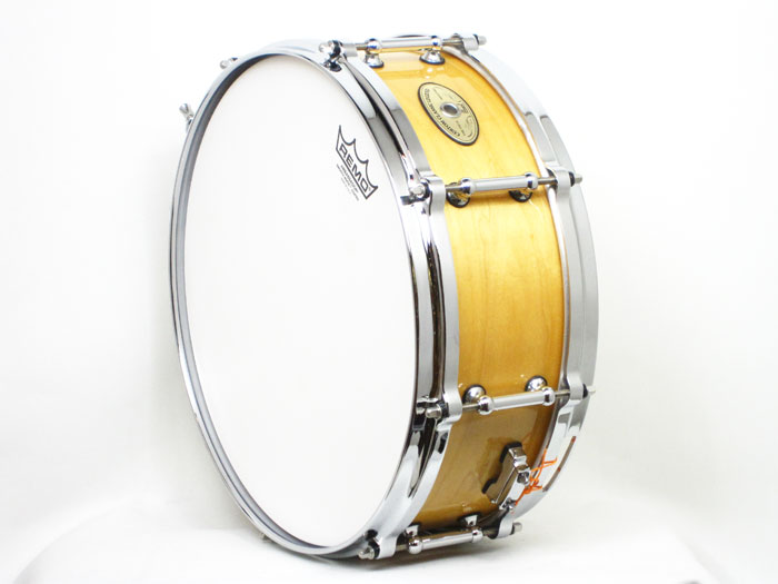 Custom Classic Legendは、レインフォースメントのついたメイプル単板シェルのモデルです。元々はワウンドタイプのブロンズスナッピーを装着していますがコイルタイプS-022Nへ変更しています。