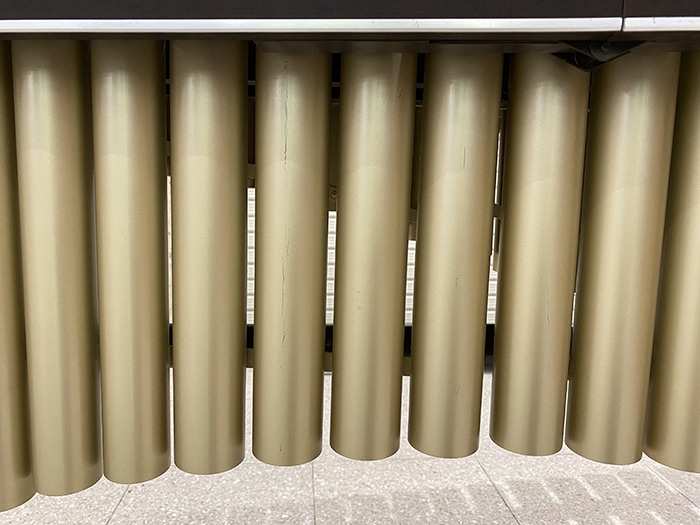 共鳴管に汚れや細かい傷、フレームに剥がれやテープ痕などございます。音板の吊り紐、及びバネは新品交換済みです。