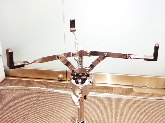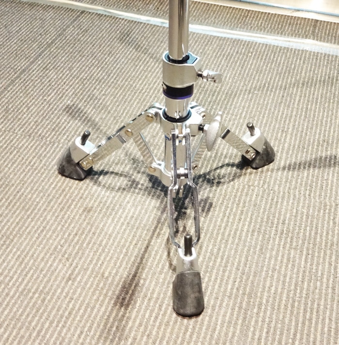 従来よりも2インチ低いセッティングが可能となり、深胴スネアにも対応します。(高さ調整幅 41~57cm) また、激しいプレイにも接地面でしっかりとグリップする大型ラバー脚を採用するとともに、ワンタッチで出し入れ出来るノック式スパイクを内蔵したことにより、操作性の向上と高い安定性を実現しました。