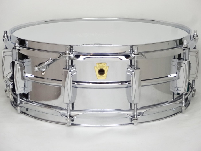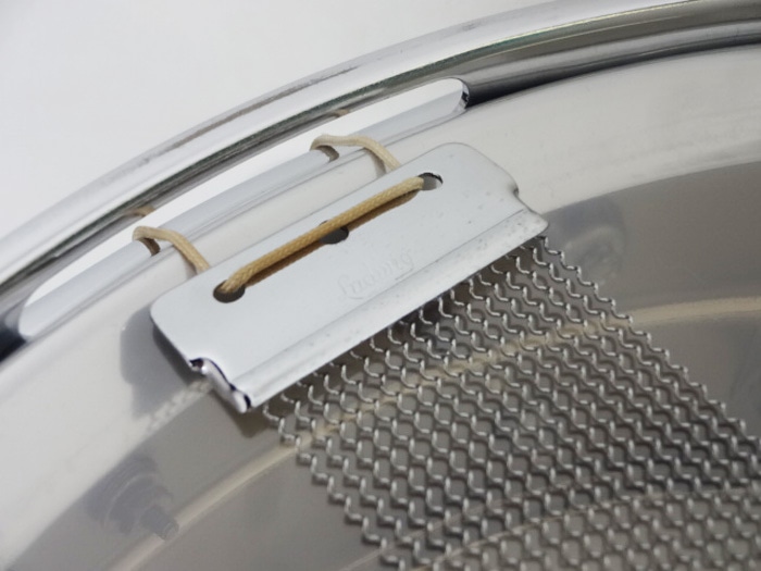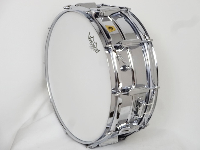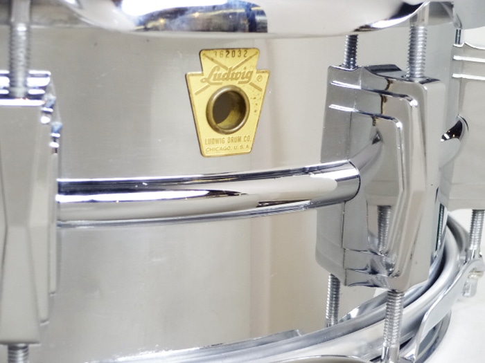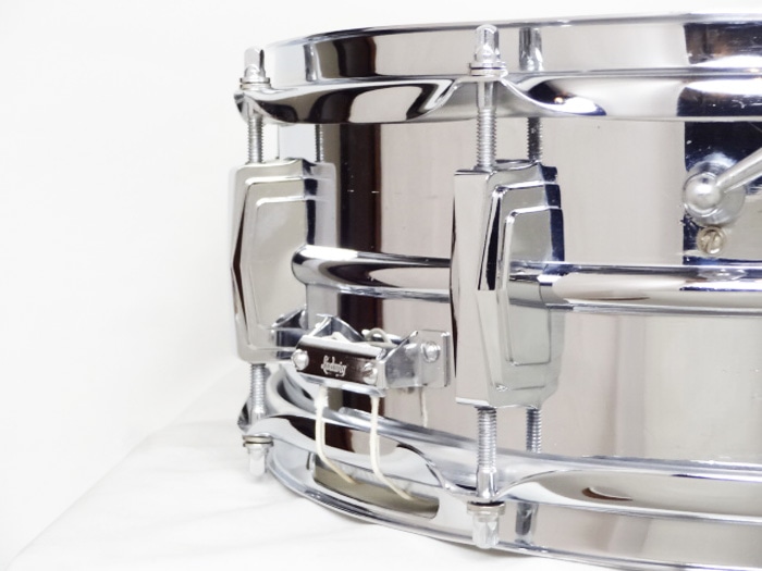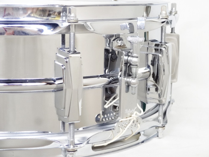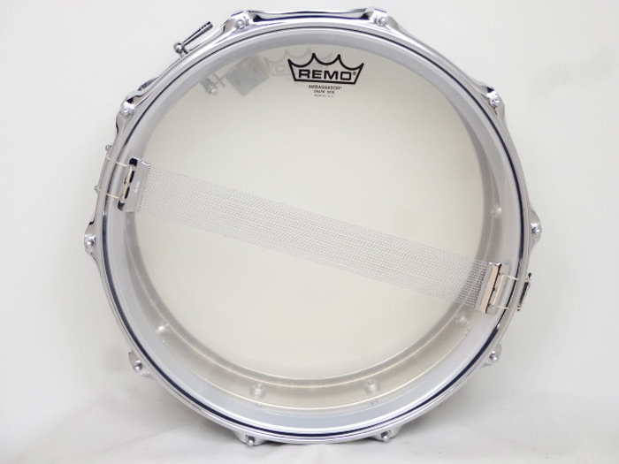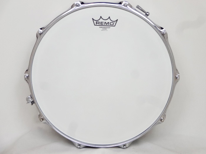 ヘッドはトップがREMO製のコーテッドアンバサダー、ボトムがスネアサイドアンバサダーに交換されており、スナッピーは当時の3ホール18本タイプワイヤー装着されています。