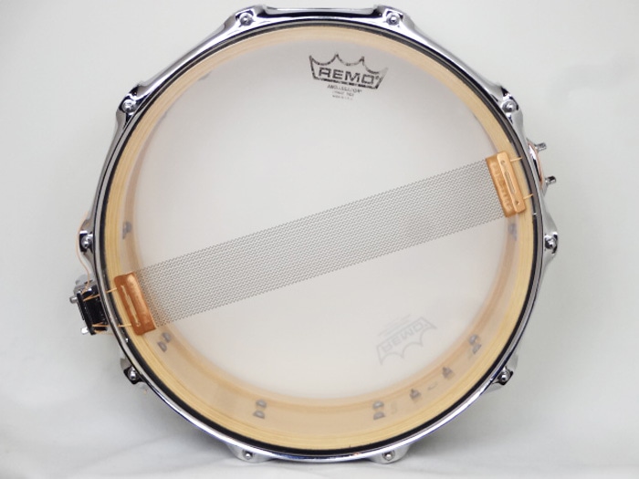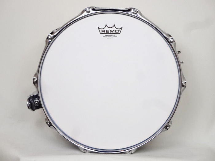 ヘッドは打面がREMOコーテッドアンバサダー、裏がREMOスネアサイドアンバサダーに、