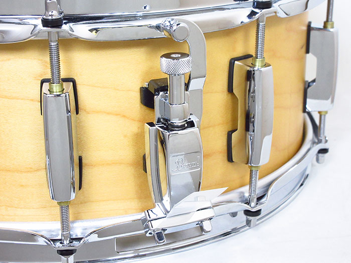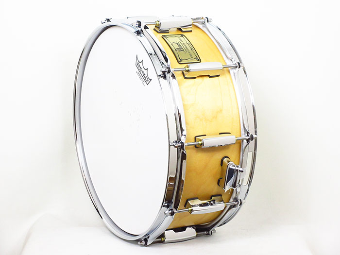 “60年代に3プライの真ん中にポプラを挟むスタイルは、本当はどういう理由だったのか定かではないにしろ、間違いなくあのサウンドのキャラクターになっていたに違いない。これがとんでもなく素晴らしいレゾナンスを生んでいたことにただただビックリ。スティックがヘッドに当たってからシェルに共鳴して立ち上がる音のスピードの速さと、その広がる大きさが今までには経験したことがないような驚きのサウンド。 (仕様) サイズ:14" x 5.5" シェル:6ply(6.1mm) コンポジット・シェル Outer: メイプル2ply(1.8mm) / Mid: ポプラ2ply(2.5mm) / Inner: マホガニー2ply(1.8mm) w/2ply(1.8mm)メイプルレインフォースメント フィニッシュ:ネイチャーメイプルラッカー ベアリングエッジ:スタンダード45° フープ / テンション数:スーパーフープ II / 10テンション ラグ:クラシック・ラグ(CL) ストレイナー / バット:SR-17A / SR-150E テンションボルト:スチールテンションボルト(T-062) スネアワイヤー:ハイカーボンスチールスナッピー 20本メッキレス (S-022NU) ヘッド打面:REMO コーテッドアンバサダー