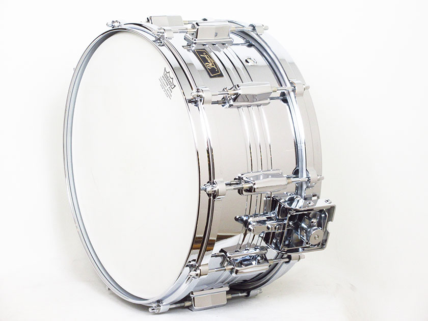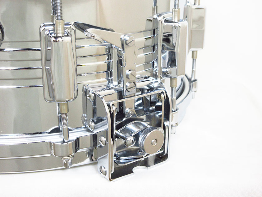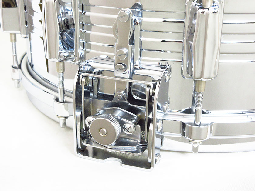 1973年に発売されたメタルシェルにパラレルアクションといった機構は当時画期的かつ斬新なアイディアで、ドラム業界を轟かせました。1978年にダイキャストフープへ仕様変更し、1980年に廃盤に至ったタイムラインです。