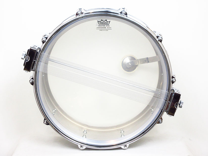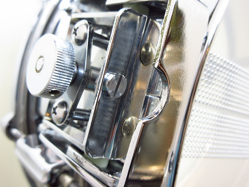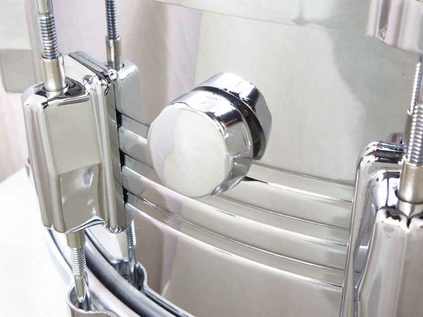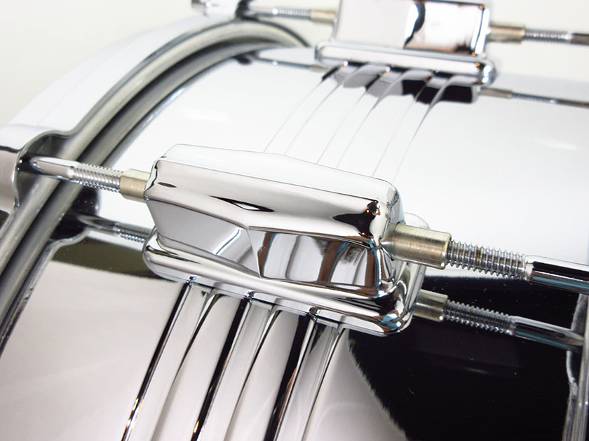 今尚もジャパンビンテージの中で根強い人気のあるジュピターブラススネアは、パラレルアクションスイッチや左右に2分割されたスナッピーが特徴的と、このダイキャストフープにより太くタイトなサウンドを獲得しています。ブラス特有のコシと丸みのある響きは絶品です。