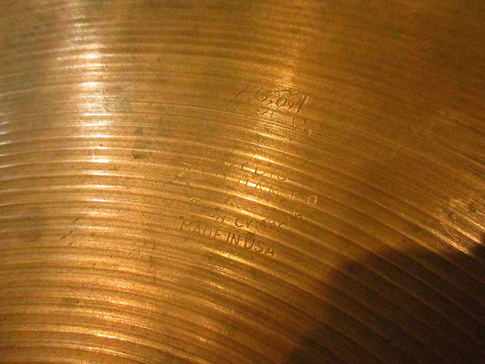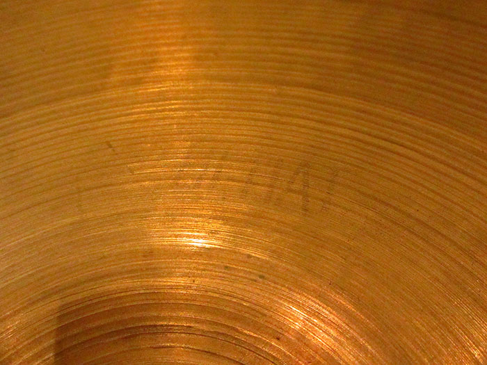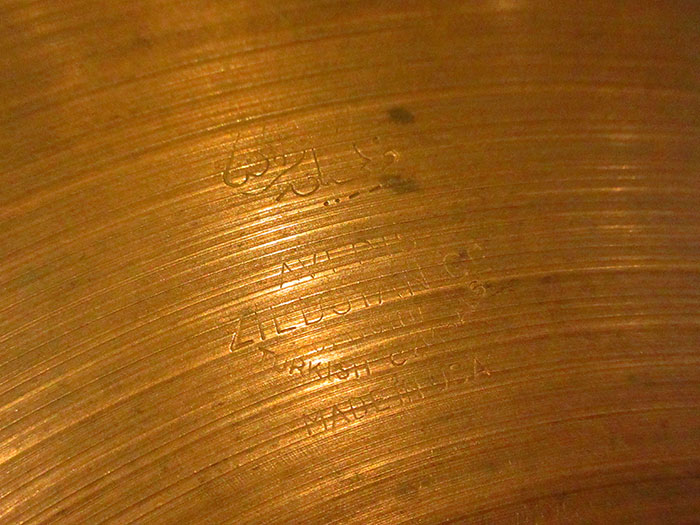 その枯れたサウンドから、ジャズやブルースといったジャンルのドラマーに絶大な人気を誇るジルジャンのビンテージシンバルです。刻印の縦が2.85mmあり、アラビア文字の両サイドとZとCoの溝がわずかながら深くなっています。また正式には1946年から55年まで製造されています。シンバル裏側から見ると無数のハンマリング痕があり独特な倍音がK ISTANBULのように感じられます。全体的にヘヴィーウェイトが多く存在する時期となります。実寸は14.4インチとオーバーサイズぎみで758g/828gと薄くトップとボトムに差がないオリジナルウェイトとなっています。AVEDISのブライトさ以外に奥行きのある深さがありジャズサウンドにハマります。