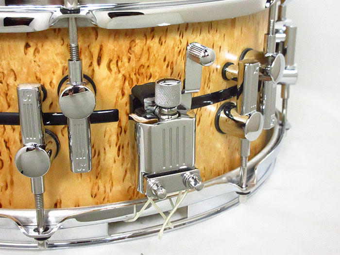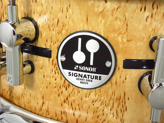 Benny Greb(ベニー・グレブ)は、1980 年ドイツ生まれのドラマーで、プロ・ミュージシャンとして活動開始以降、世界各国のドラム・フェスティバルに出演。その卓越したテクニックとバックビートが世界で評価され一躍脚光を浴びます。ソナー社で特注品としてベニー・グレブ氏に譲り受けていた物をそのまま製品化しました。ベニーサウンドをつくるため、サイズは13"×5.75"と特殊な構成に、またシェルアウターに樹脂製のセンターリングを施しシェル鳴りを程よく抑え、シンセティックなサウンドメイクを再現します。またエンブレムにはベニーの横顔のイラストが入っています。