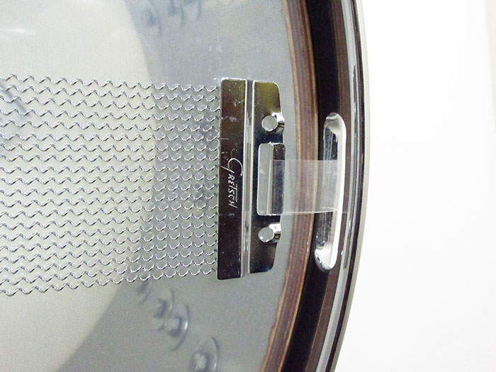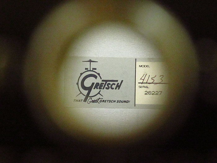 薄いラッカー仕上げが特徴でオリジナルフィニッシュ、またシェルの内側にはFifth Gretsch Label GW2タイプのオリジナルタグシールが貼られておりシリアルは「28227」となっております。1979年から83年まではシルバーとややクリーム色のラベルでシリアルはインクスタンプ、その後、右側が白いラベルでデジタルっぽい自体になります。