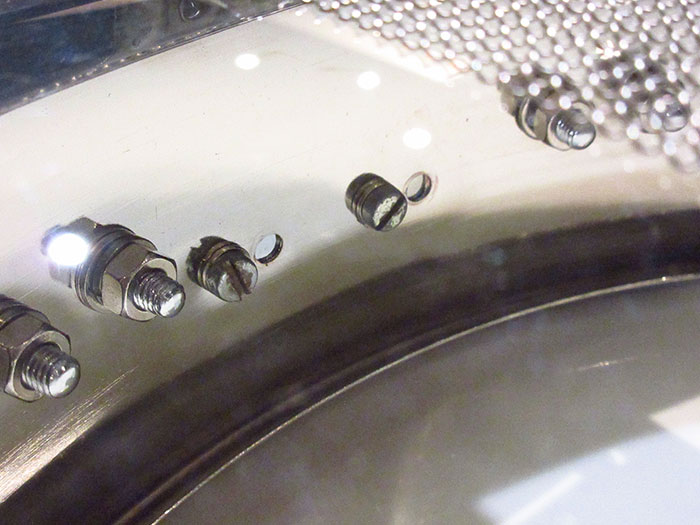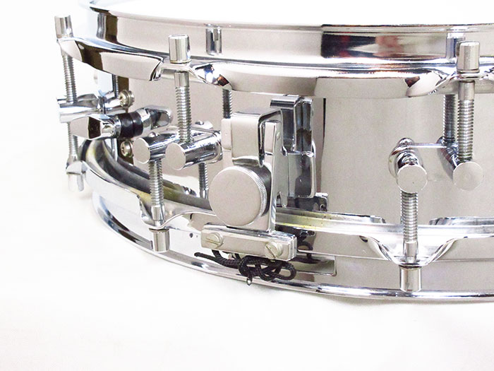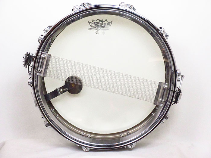 トップ、ボトムはREMO製に交換され、オリジナルフープ、その他のパーツは全てオリジナルです。ストレイナーとバット部に不思議なエクストラホールがあります。憶測ではありますが製造途中で間違った取り付け穴を開けたのではないかと思われます。購入後わざわざセンターからズレた穴を後々開ける理由もありませんし、不思議な穴はプレートで閉じられています。サウンドに大きく影響はないと思われます。