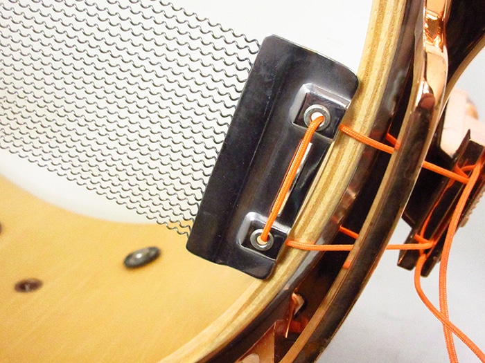 シェル内側のDATE STAMPはうっすらで読み取れませんがフープより1990年製造と思われます。状態は目立った傷など無く、コパープレートもしっかり残っております。ヘッドはREMOコーテッドアンバサダー、スナッピーワイヤーは純正の24本スティールが装着されています。