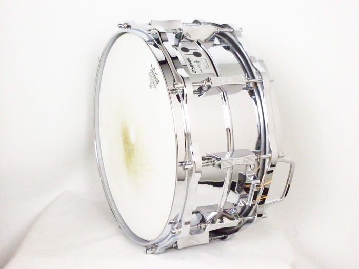 75年から発売されたPHONIC フェロマンガンスティール「D-506」は1990年まで生産せれていたロングセラーのモデルです。このアイテムはフープと内蔵マフラーが無いことから1980年後期型と思われます。マンガンと鉄の合金「フェロマンガン」は通常のスティールサウンドより柔らかく、まろやかさのあるメタルサウンドはフォニックシリーズならではです。