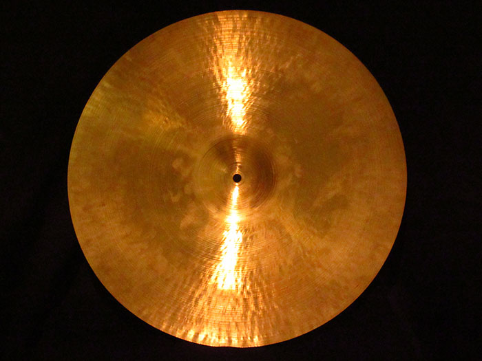 シンバル裏側から見ると無数のハンマリング痕があり独特な倍音がK ISTANBULのように感じられます。全体的にヘヴィーウェイトが多く存在する時期となります。当ウェイトは20インチで2,051gと薄く珍しいウェイトとなっています。AVEDISのブライトさ以外に奥行きのある深さがありジャズサウンドにハマります。