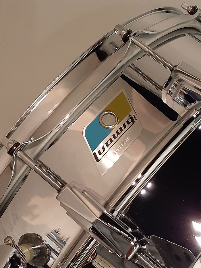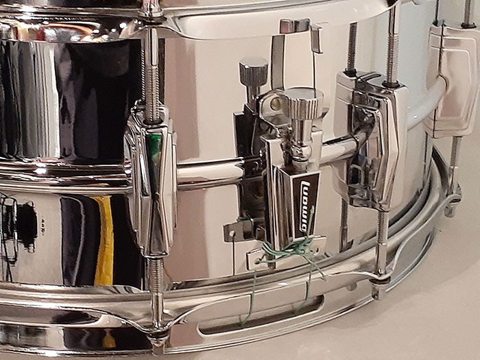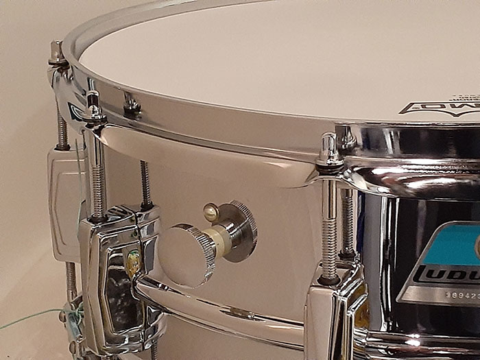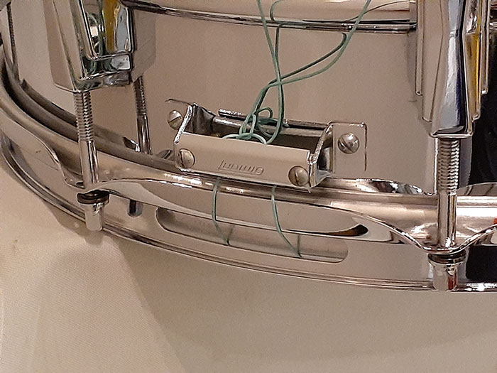 バット部は70S P-32を搭載し止めネジもオリジナル。Ludwigスネアの中で重要な役割をするテンションボルトワッシャーはブラス製のオリジナルで高音域の倍音成分を緩和します。