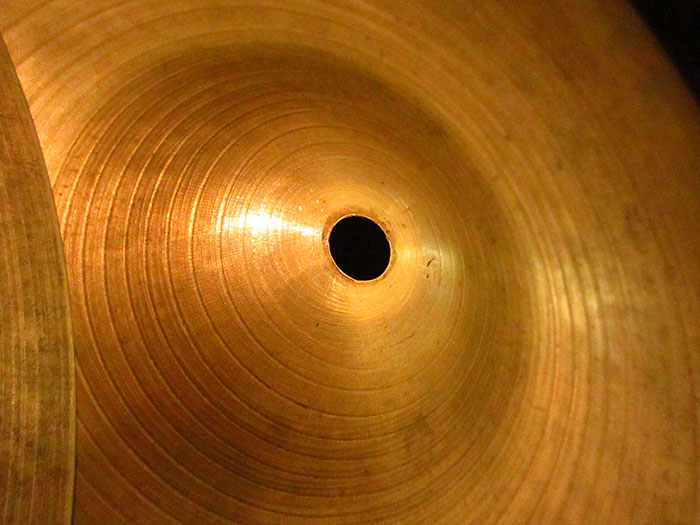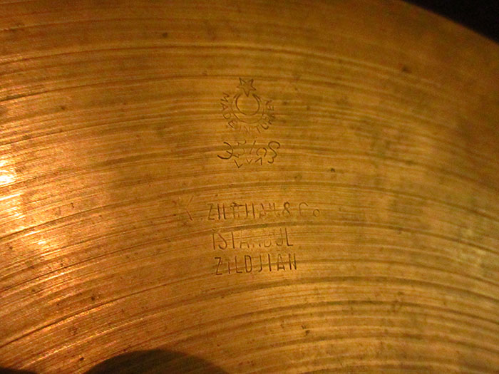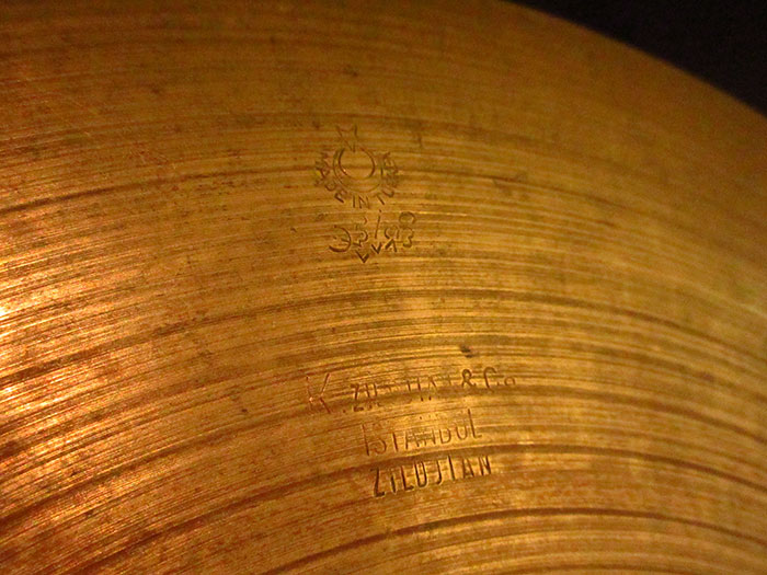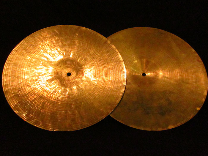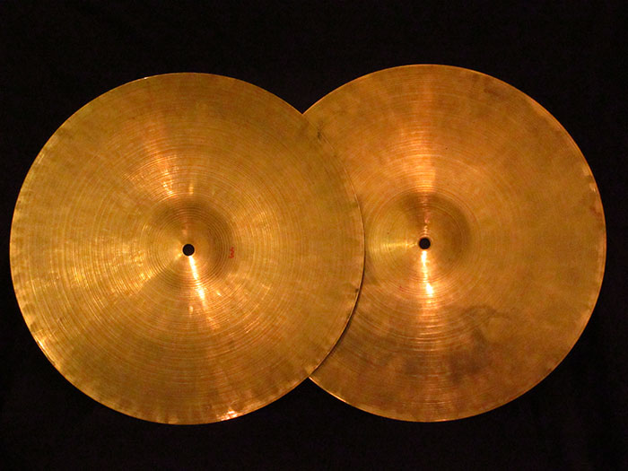 刻印がNew Stampであることから1967年以降の製造品と思われます。トップ691g/ボトム1063gとNewBeat的ウエイト差があり、チック音はしっかり出ておりハーフオープンはシズリーなサウンドを奏でます。またトップボトムにサイズがやや異なるためシンバル同士が重なった時はしっかりと中の空気が抜け、こもったサウンドを回避しています。非常に深みがありクセは少なく扱いやすいオールドKでございます。