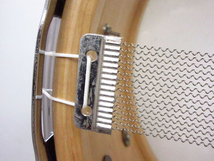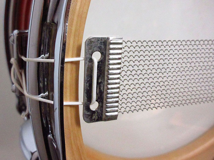 国内入荷の頻度も少なく今では稀なアイテムとなっています。サウンドは細かいロールでも粒立ちが良くまとまりのあるのが特徴です。オープンリム、クローズリムショット時には乾いた少々タイトなサウンドが感じられます。フープにある刻印がたまりません。