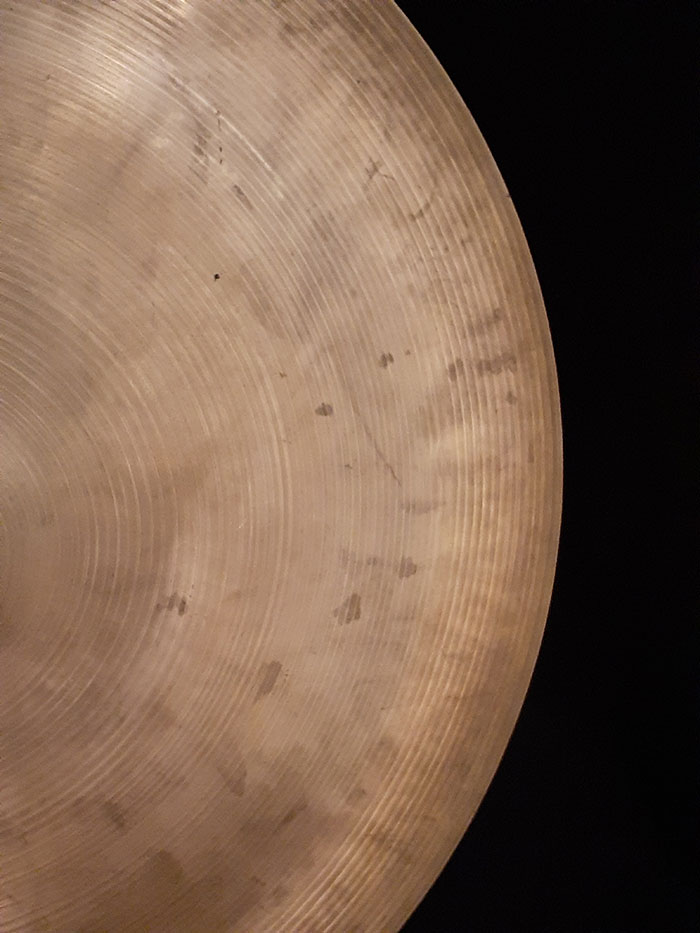 チャイナシンバルよりカーブが浅く当時のドラマーはリベットを装着して演奏されるスタイルもございました。