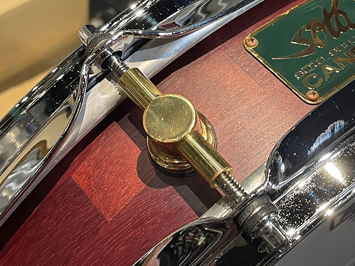 Sota DrumsはState of the Art Percussionの略でアメリカイリノイ州でブロックをセグメント化して作られたシェルが最大の特徴です。以前は様々な木材で作られていましたが、現在は廃業となっています。そのシェルをカノープスが購入し組み立てたスネアですがあまり詳しい情報がありません。