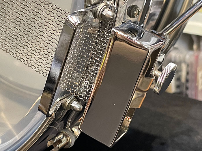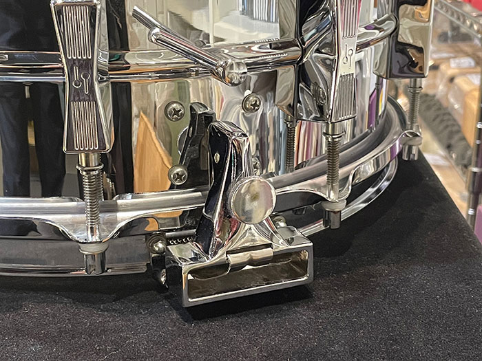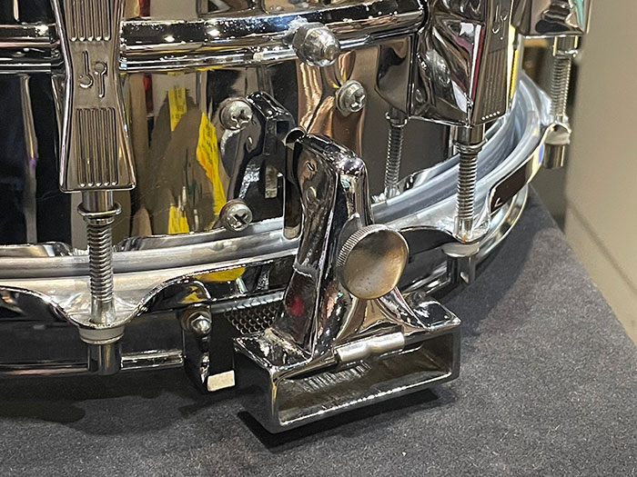 75年から発売されたPHONIC フェロマンガンスティールは1990年まで生産せれていたロングセラーのモデルです。その中でも70年代後期から80年代初期にかけてパラレルアクションタイプのスネアが存在しており、非常に珍しいモデルとなっています。1979年の冊子にはD525と紹介されていました。当店初の入荷となります。