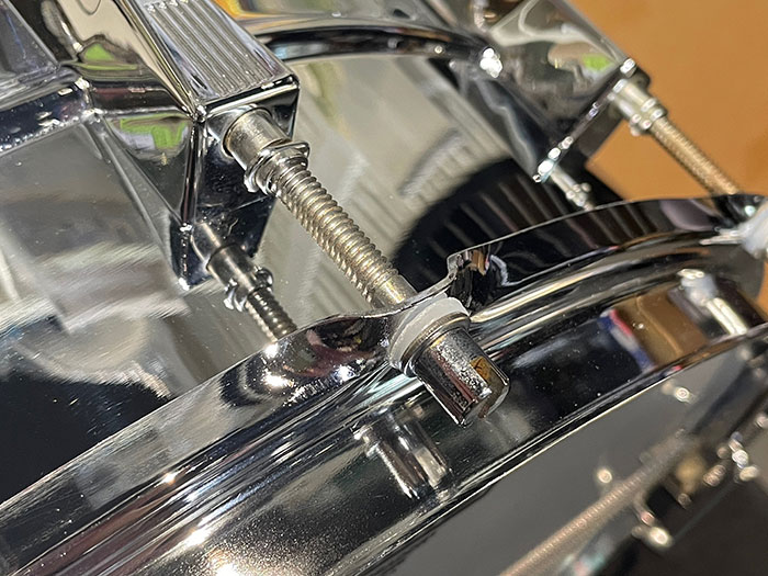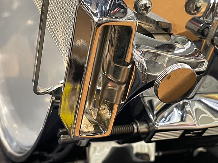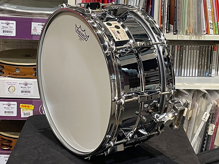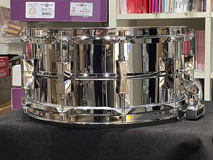 マンガンと鉄の合金「フェロマンガン」は通常のスティールサウンドより柔らかく、まろやかさのあるメタルサウンドはフォニックシリーズならではです。またフープはボトムの1.8mm厚のフェロマンガンのトリプルフランジが取り付けられておりこの年代の仕様と思われます。
