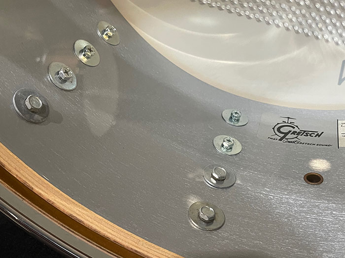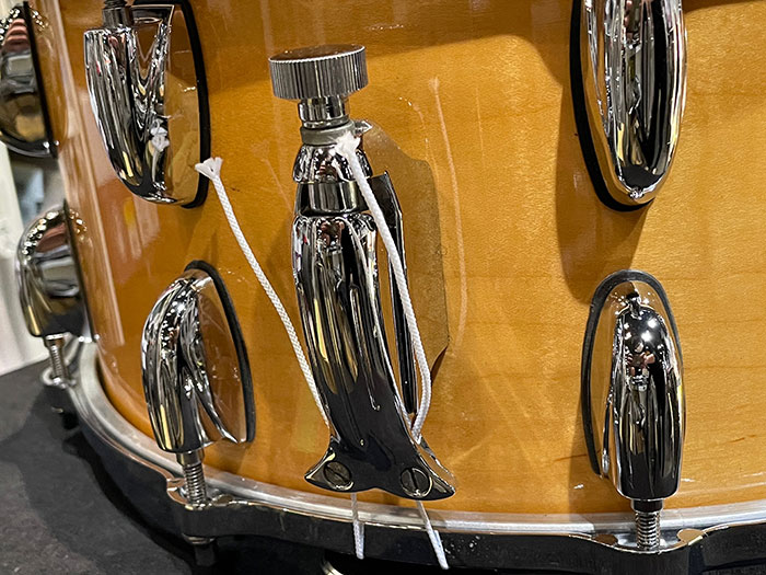 シェルはJasper製、Thin 6plyシェルでインナーとアウターにハードメイプル、間にスイートガムウッドをブレンド、アウターシェルを見るからに良さそうなメイプルを使用しているように見受けられます。これらはウィスコンシン州北部やミシガン州の木材屋より調達し、インディアナ州ジャスパーへ運んだとされています。のちに2002年1月にジャスパーウッドプロダクツは廃業となり、その後ケラーシェルへと移ってゆきます。