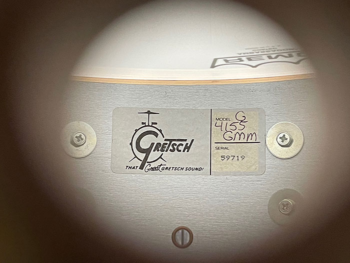 インナーステッカーはFourth Gretsch LabelでG/W2タイプ、デジタルシリアルより83年以降、エンブレムはスクエア#2タイプで1998年まで使用されたものと推測されます。Gretschはシリアルから詳しい年代までは解明できませんが、インナーミュートが取り付けられていないことから90年代に生産思われます。