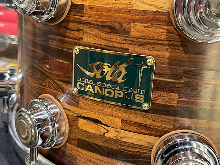 日本ではあまり見かけないドラムメーカー、Sota DrumsはState of the Art Percussionの略です。アメリカイリノイ州でブロックをセグメント化して作られたシェルが最大の特徴です。以前は様々な木材で作られていましたが、現在は廃業となっています。