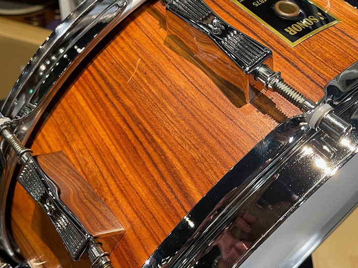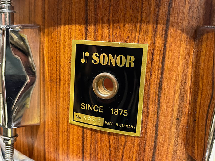 当モデルは1975年にSONOR社100周年を記念として発売されたCentennialモデルです。1970年代は上下ともフープが1.6mmのトリプルフランジフープが取り付けられており、エンブレムはゴールド仕様が特徴となっています。