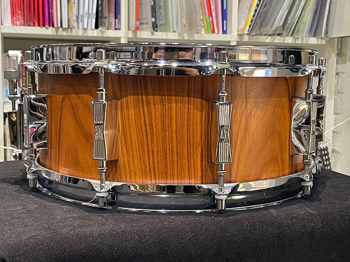 ジェニュインローズウッドスネアは10プライビーチシェルが採用されており、90年代~現行の同機種と比べてより広がりがありふくよかなサウンドが特徴です。