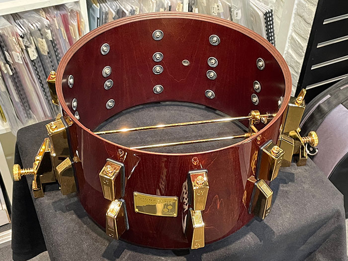 因みにスネアはメイプルウッド、ベルブロンズの4機種発売されていたそうです。なんとダブルタムホルダーのみで226,000円。そんな非常に高額な物となっていました。このような金額帯だったため日本国内のオーダーはなく、世界で約5セットの販売となったそうです。