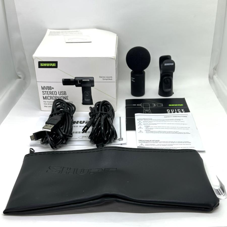 ・付属品:MV88+本体、マイクホルダー(5/8-3/8インチ変換ねじ)、Micro-B - USB-Cケーブル(3m)、Micro-B - USB-Aケーブル (3m)、ウィンドスクリーン、キャリングポーチ