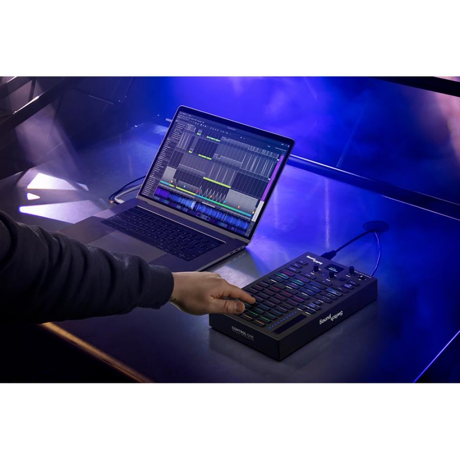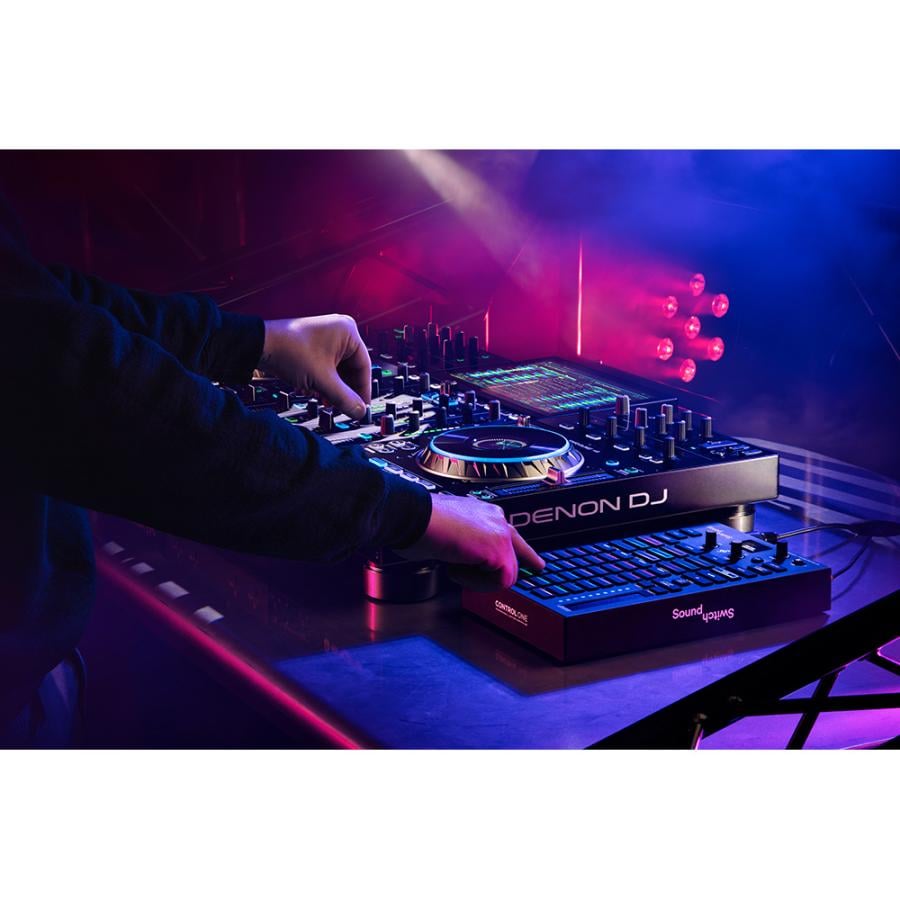 2つのDMXユニバース出力と2つのDMXユニバース入力を使って大規模照明設備に統合することができます。 SoundSwitchソフトウェアで初期設定(Venue設定=会場に設置されたDMX照明機器のアドレス登録やグループ設定)を行い、作成された自動生成の照明ディスプレイと組み合わせて1対1でマッピングされたハード ウェアを使用することにより、照明効果をその場でコントロールすることがさらに簡単になるので、ハードウェアとソフトウェア による包括的な照明ソリューションを実現できます。SoundSwitchソフトウェアに3ヶ月間無料でアクセスできるので、すぐに ビートグリッドを使ったオート・ライトショーを作成することができます。加えてSoundSwitchとControl OneはEngine DJ、Serato DJ、Virtual DJ、Ableton LINKとMIDI Clockに対応しています。